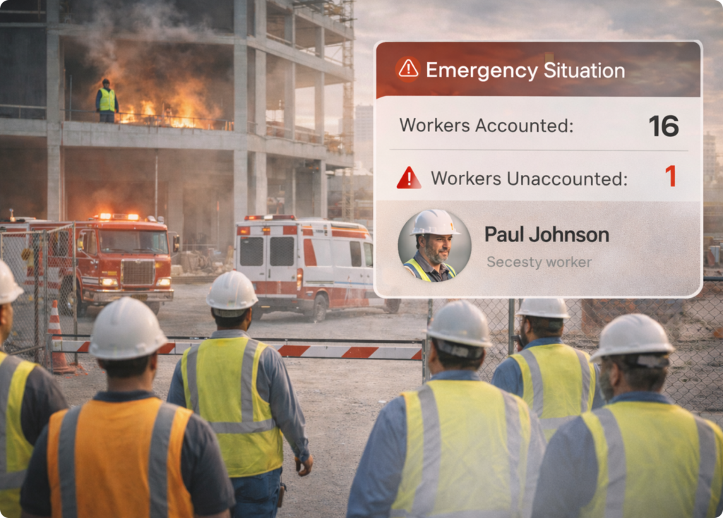 Verify safety credentials instantly and account for personnel during emergencies. Maintain a centralized compliance system across all projects.